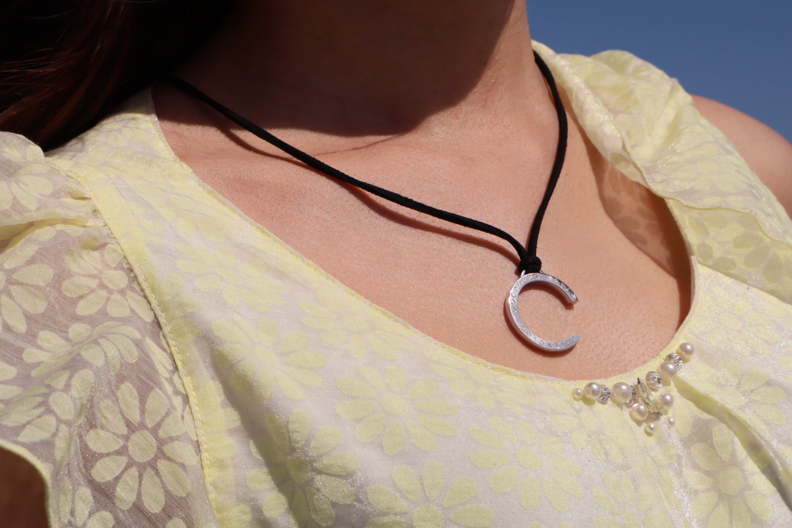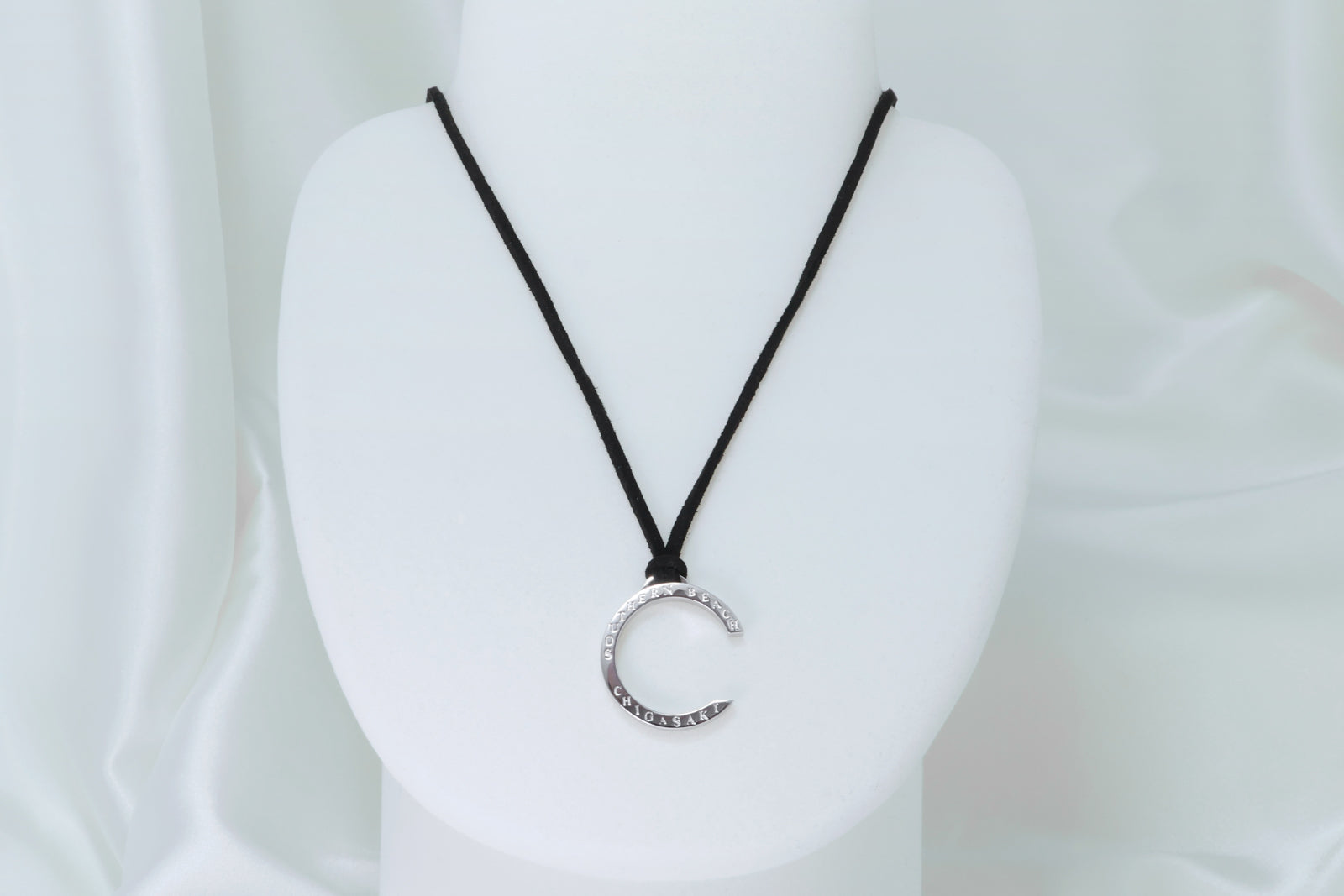 サイズ(約)=直径25×厚さ3mm/重さ(約)=7g/素材:ペンダントヘッド・留め具=シルバー925(ロジウムメッキ)、ネックレス黒紐=合成皮革